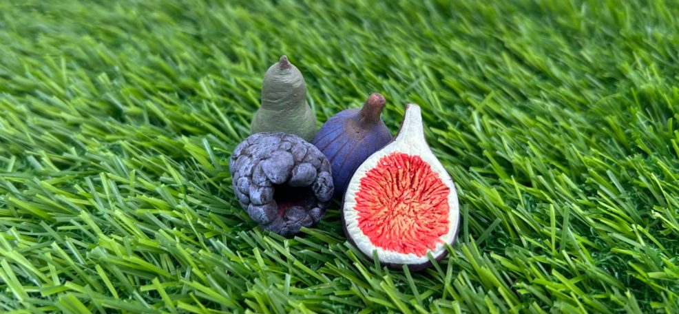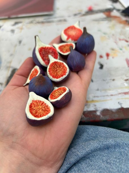 Handmade miniature hand-painted airdry clay fruits, are now available on her Etsy shop: